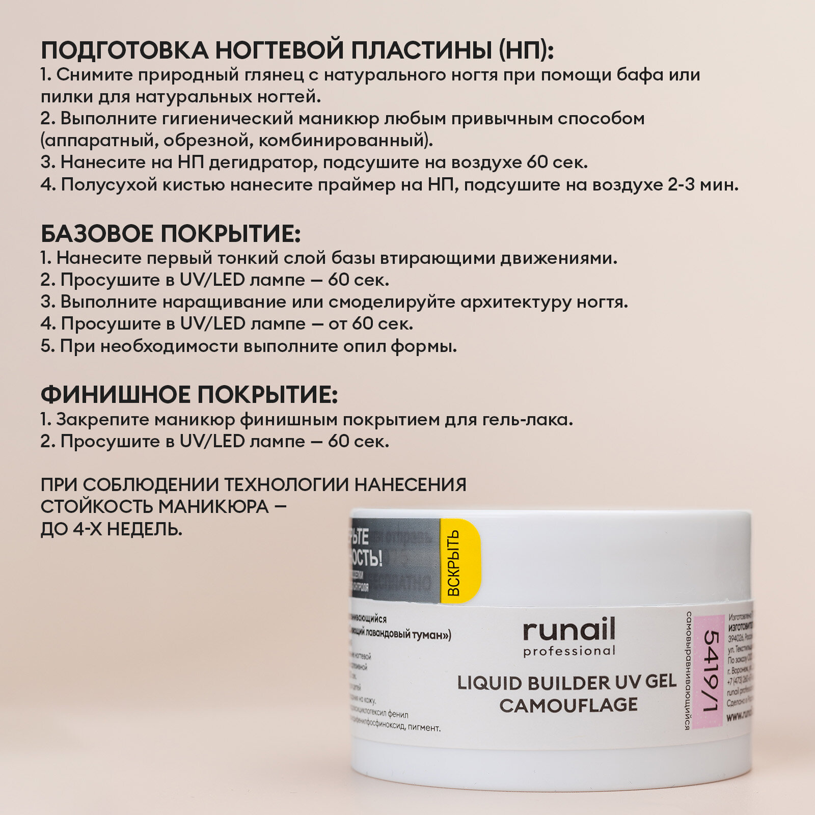RUNAIL УФ-гель камуфлирующий, французский бежевый 15 г