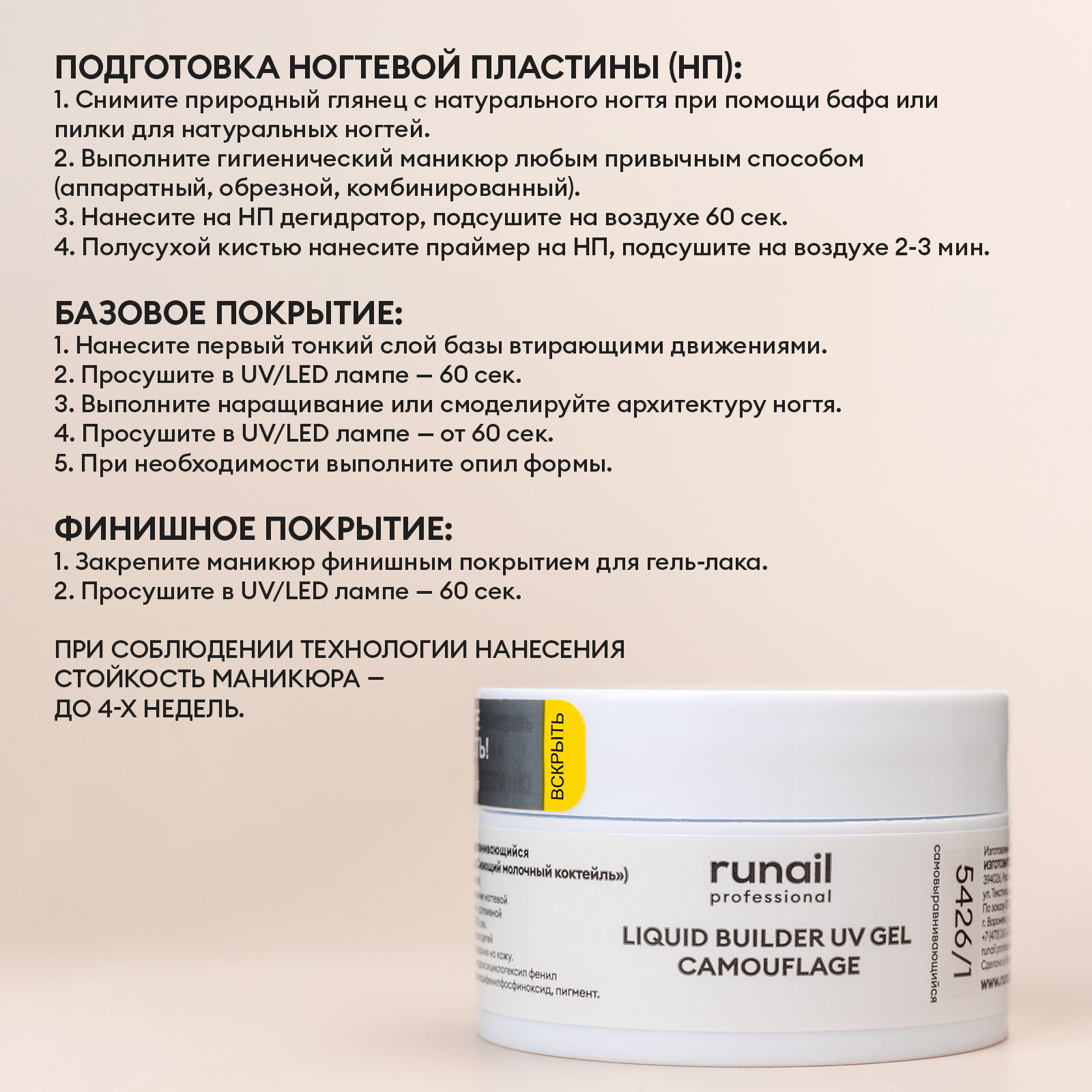 RUNAIL УФ-гель камуфлирующий, французский бежевый 15 г