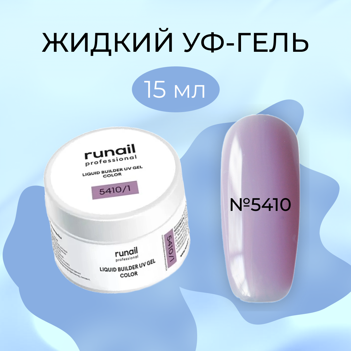 Цветной жидкий УФ-гель для ногтей Runail Professional №5389/1, 15 мл