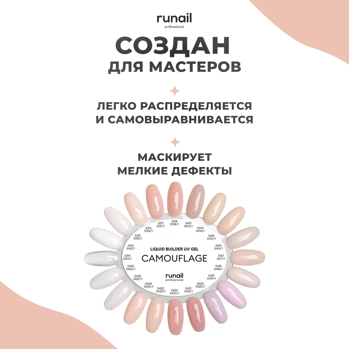 Камуфлирующий жидкий Уф-гель Runail,Сияющий молочный коктейль, 15 мл