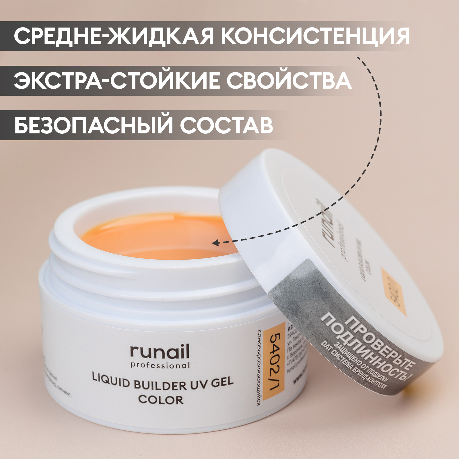 RUNAIL, Камуфлирующий УФ-гель (цвет: Айвори) №6377, 15 г