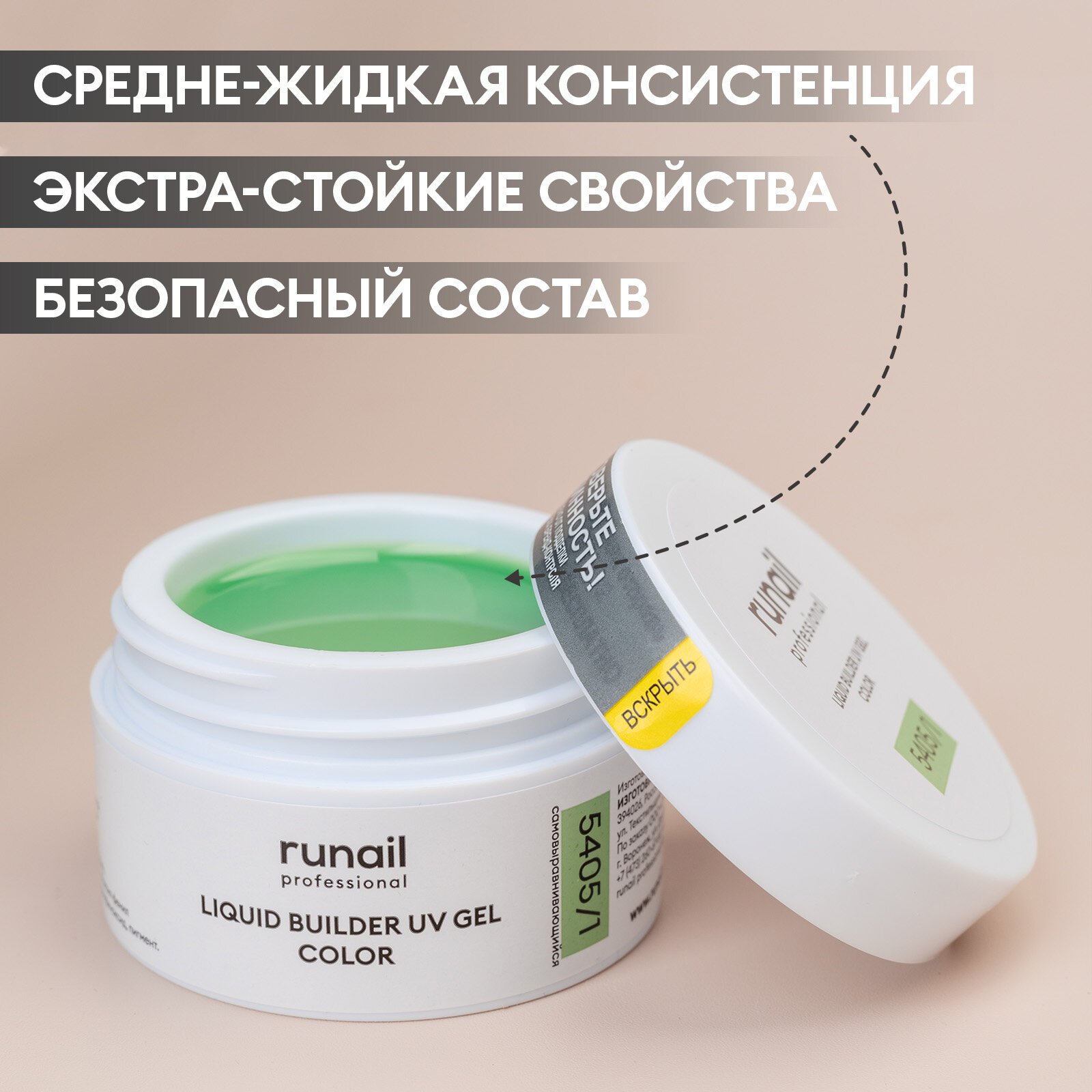 RUNAIL, Камуфлирующий УФ-гель (цвет: Айвори) №6377, 15 г
