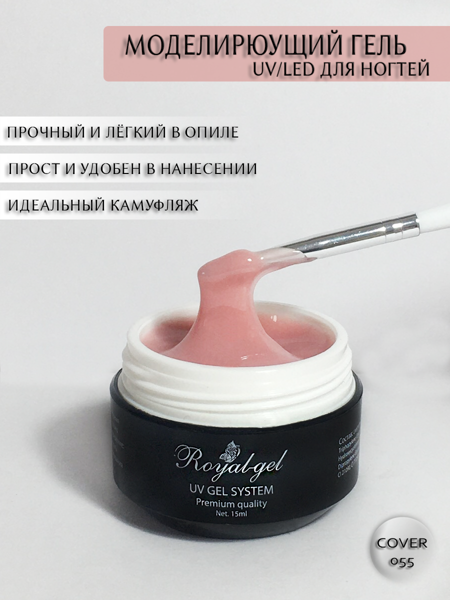 Купить "COVER GRAND 55" гель для наращивания ногтей камуфлирующий Royal-gel 5 мл.