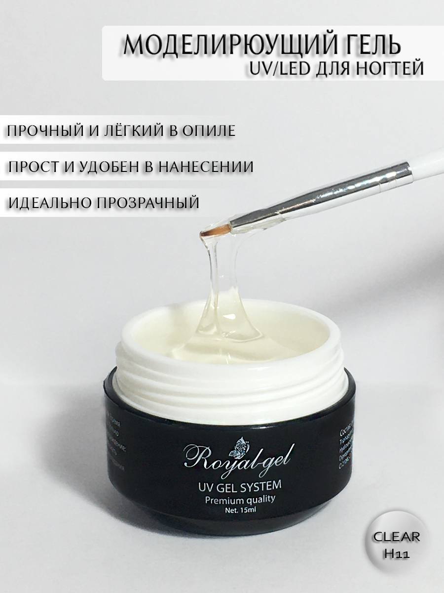 Купить "CLEAR H11" гель для наращивания ногтей прозрачный Royal-gel 5 мл.
