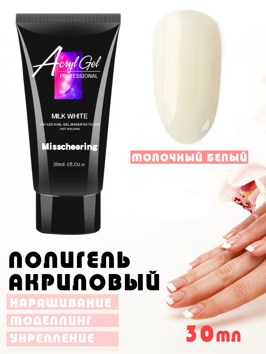 Полигель акригель для наращивания ногтей акриловый моделирующий молочный белый 30мл