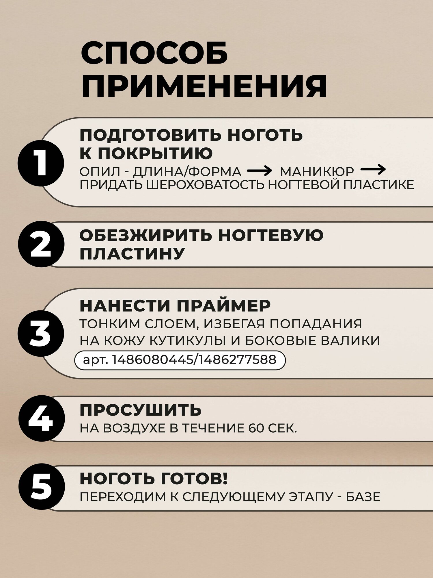 | Способ примения | обезжирить ногтевую пластину и точечно нанести праймер-желе, затем растереть по поверхности отдельной кистью. Просушить на воздухе в течение 1-2 минут. |