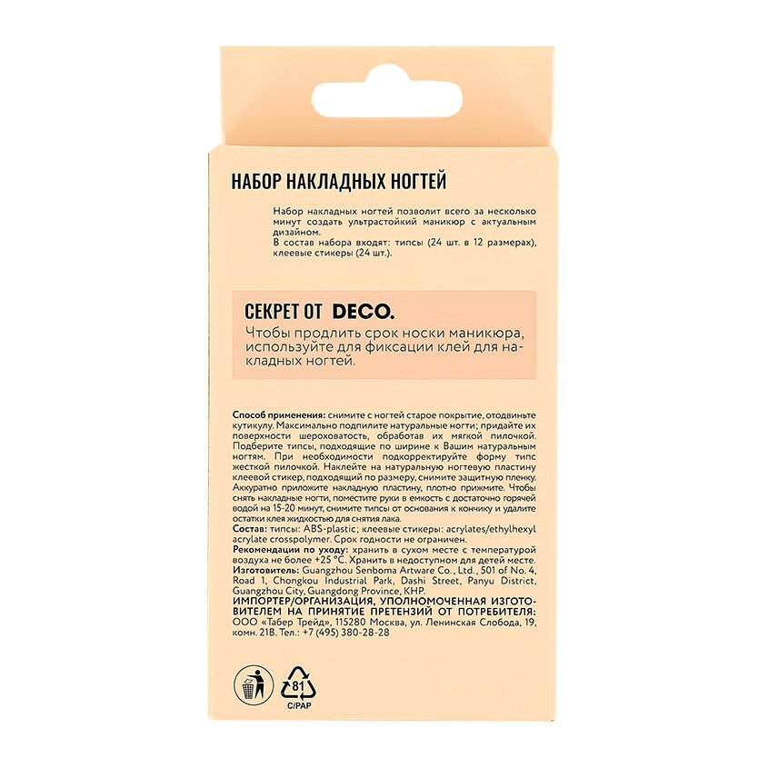 | Состав | типсы: ABS-plastic; клеевые стикеры: acrylates/ethylhexyl acrylate crosspolymer. |