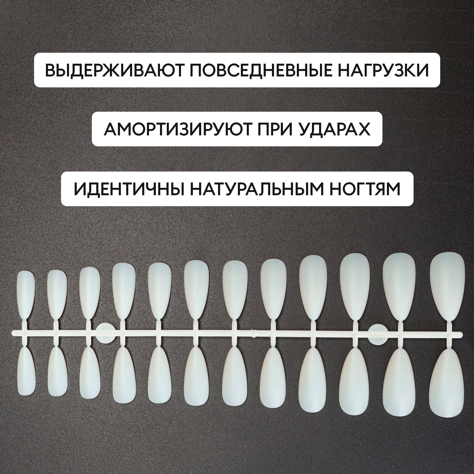 Гелевые типсы для экспресс наращивания натуральные балерина (размеры 1-10) 240 шт. №7078