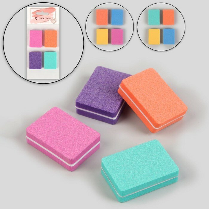 Купить Бафы наждачные для ногтей, двусторонние, 4 шт, 3,5 × 2,5 × 1 см, разноцветные, 3 штуки