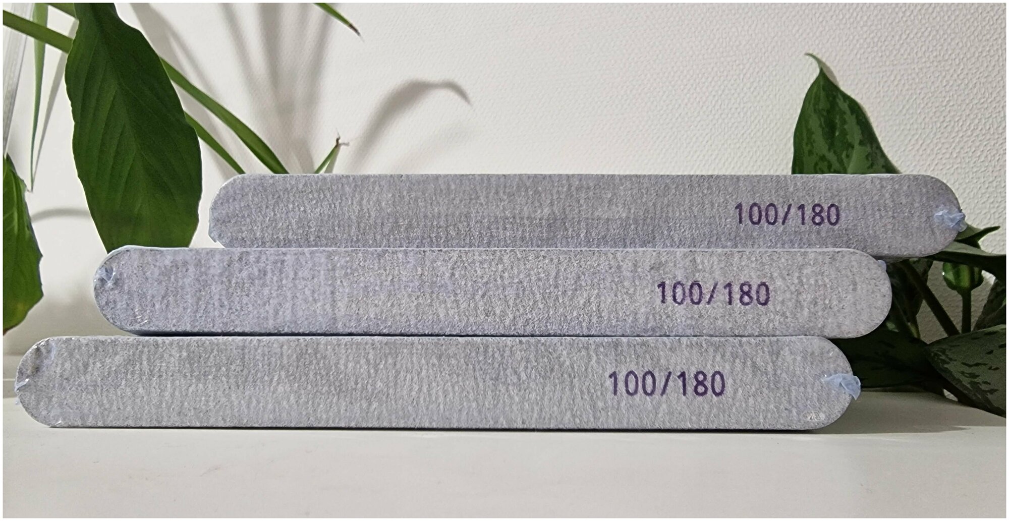 | Дополнительная информация | Сторона с абразивностью 180 гритт подходит для обработки натуральных ногтей, на руках и ногах. Сторона с абразивностью 100 гритт подходит для обработки искусственных ногтей, моделирования. Одноразовая пилка для салонов, маникюрных кабинетов и частных мастеров. |