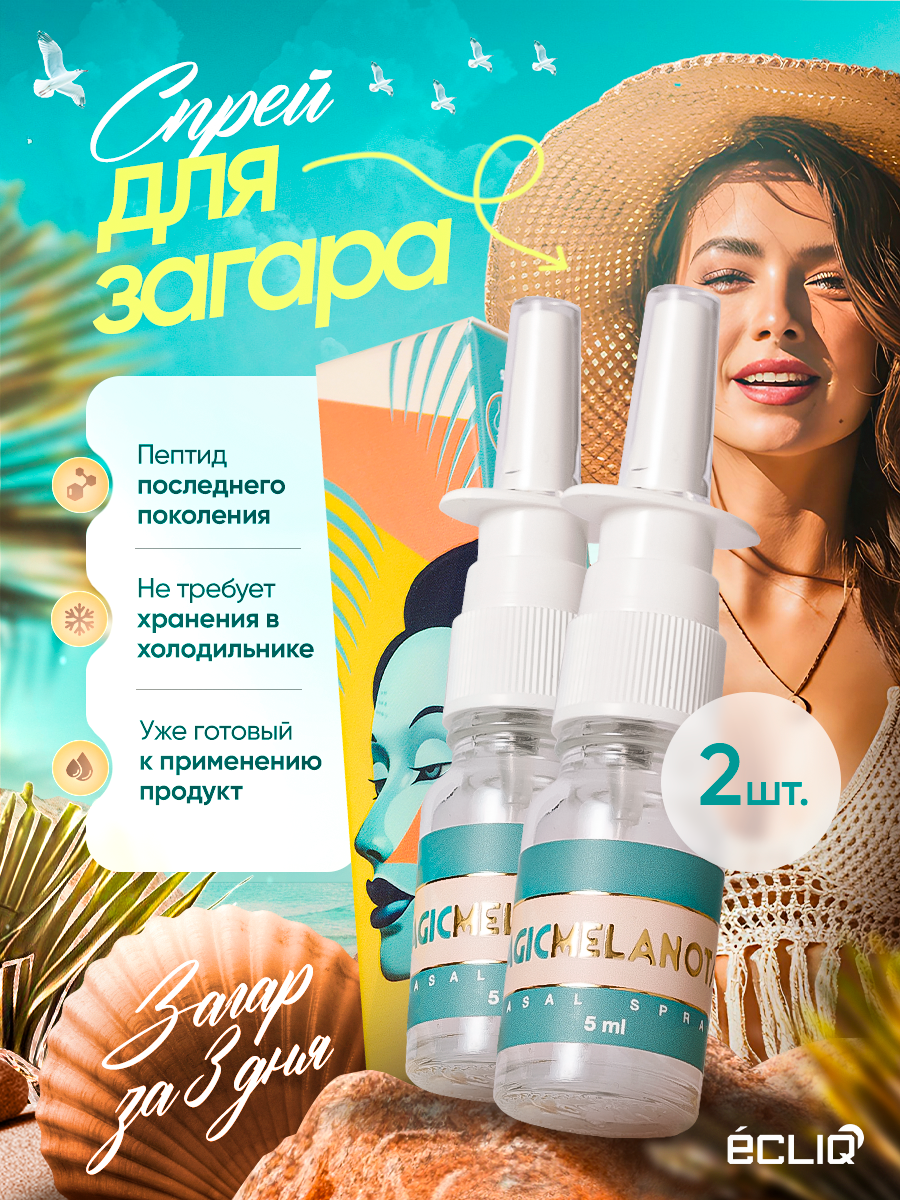 Спрей активатор загара Ecliq Magicmelanotan меланотан-2 5 мл 20 мг, 2 флакона интересное: