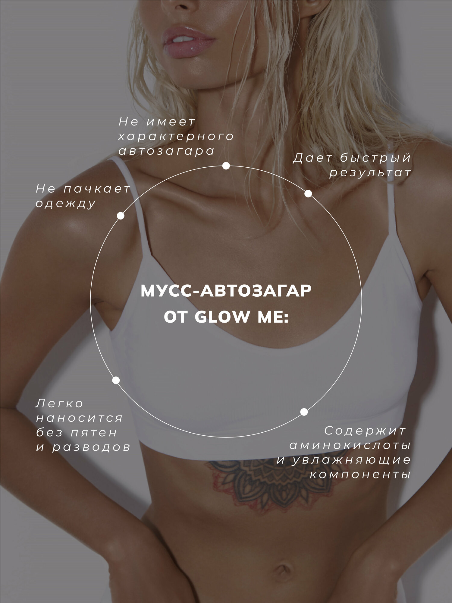 Ниже Вы можете прочитать отзывы на Автозагар мусс для тела GLOW ME, ознакомится с подробными характеристиками, посмотреть интересные обзоры и фотографии на Автозагар мусс для тела GLOW ME.