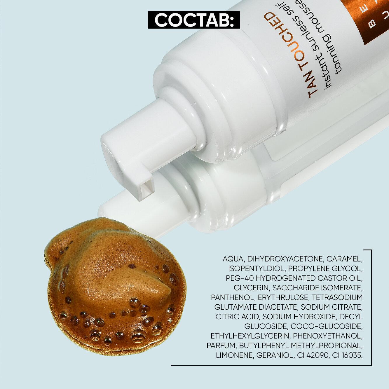 | Состав | Aqua, Dihydroxyacetone, Caramel, Isopentyldiol, Propylene Glycol, Peg-40 Hydrogenated Castor Oil, Glycerin, Decyl Glucoside, Phenoxyethanol, Saccharide Isomerate, Panthenol, Erythrulose, Ethylhexylglycerin, Parfum, Tetrasodium Glutamate Diacetate, Citric Acid, P-T-Butyl-Alpha-Methylhydrocinnamic Aldehyde, Sodium Citrate, Limonene, Geraniol, Ci 42090, Ci 16035 |