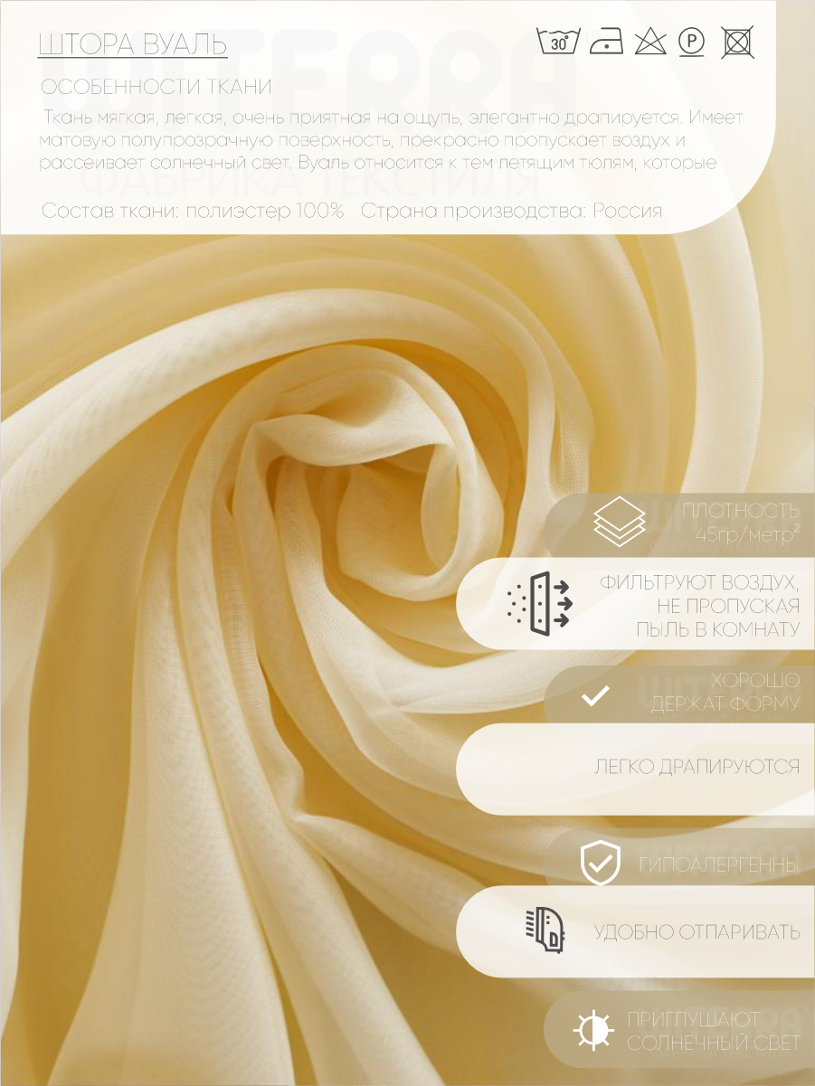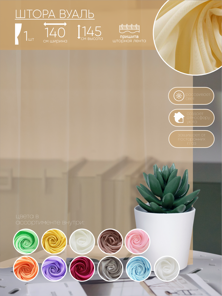 СохранитьШтора вуаль однотонная 140х145 см, цвет шампань интересное: