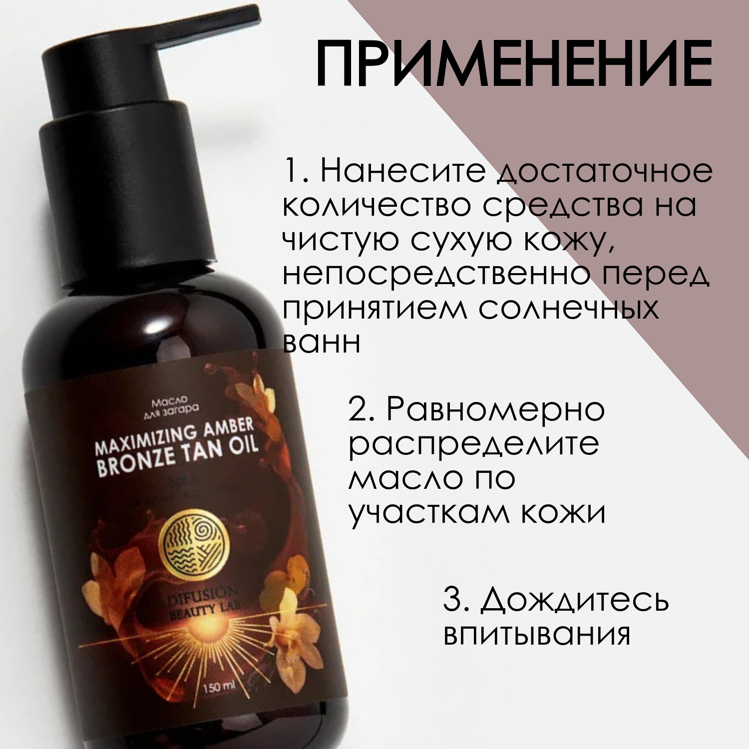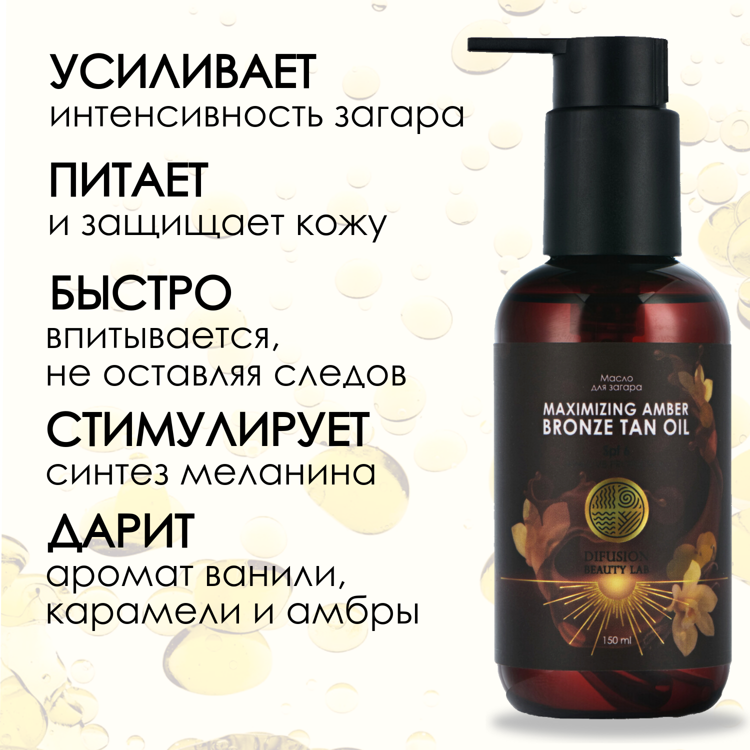 Масло для интенсивного загара "Maximizing Amber Bronze tan oil" Difusion Beauty Lab, 150 мл интересное: