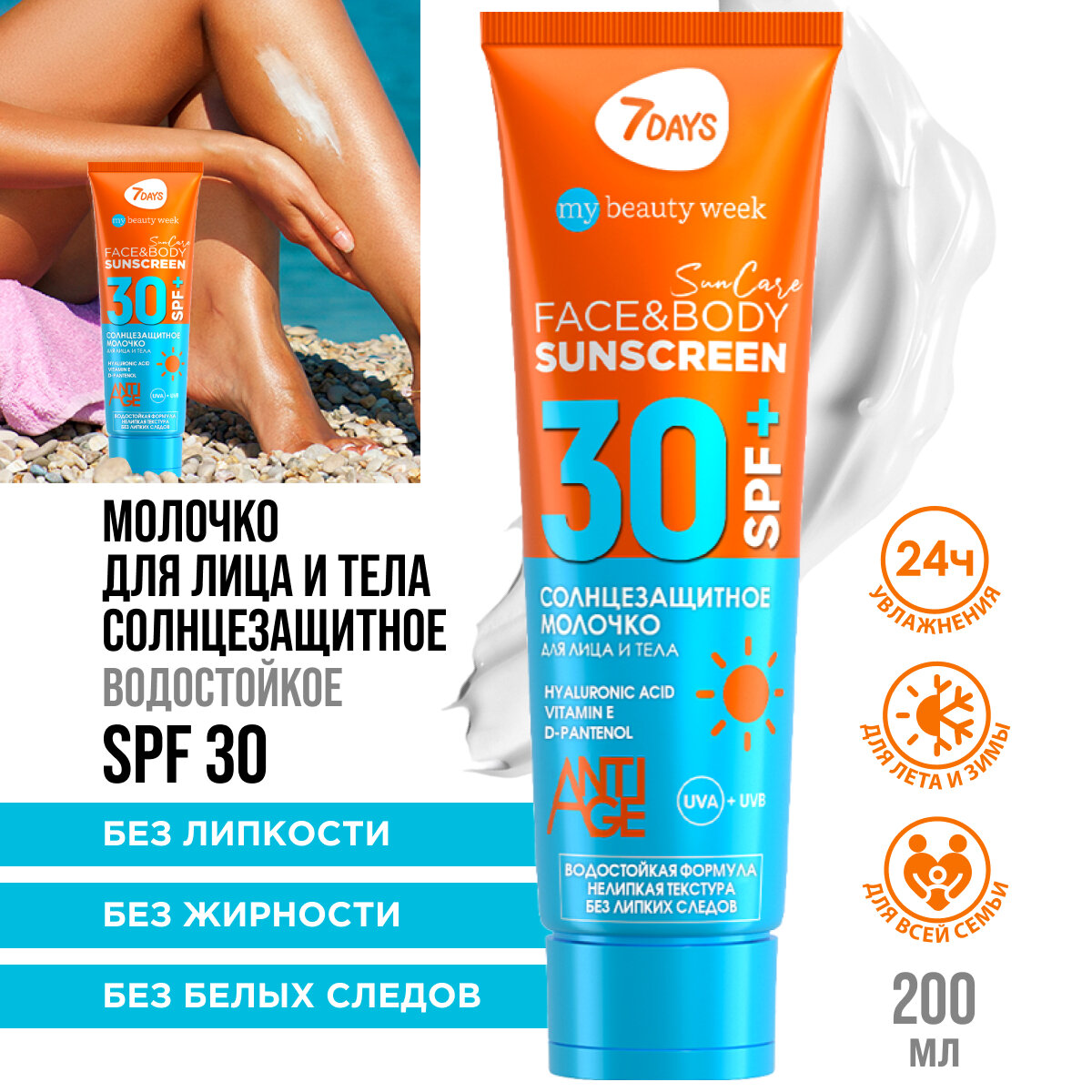 Молочко солнцезащитное для лица и тела 7 DAYS Sunscreen SPF 30+ 200 мл