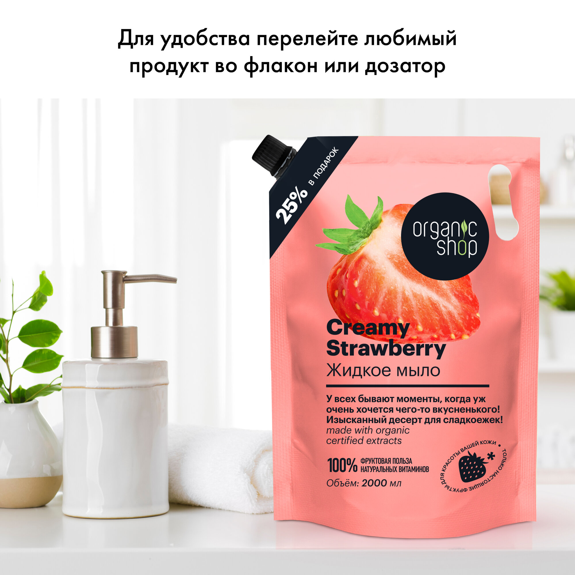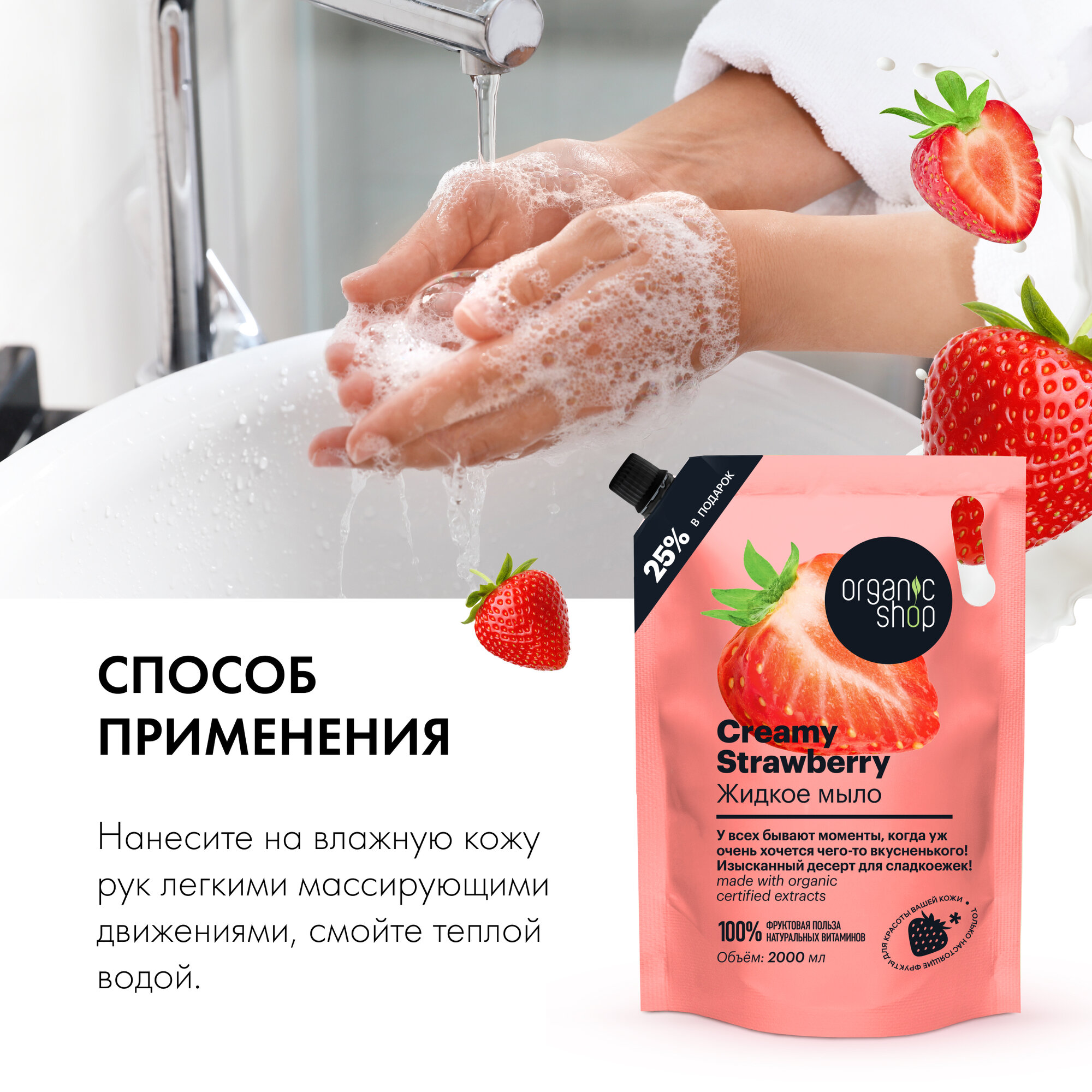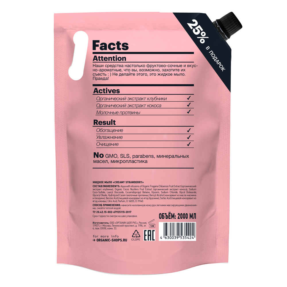 Жидкое мыло для рук Organic Shop HOME MADE Creamy Strawberry дой пак, 2000 мл интересное: