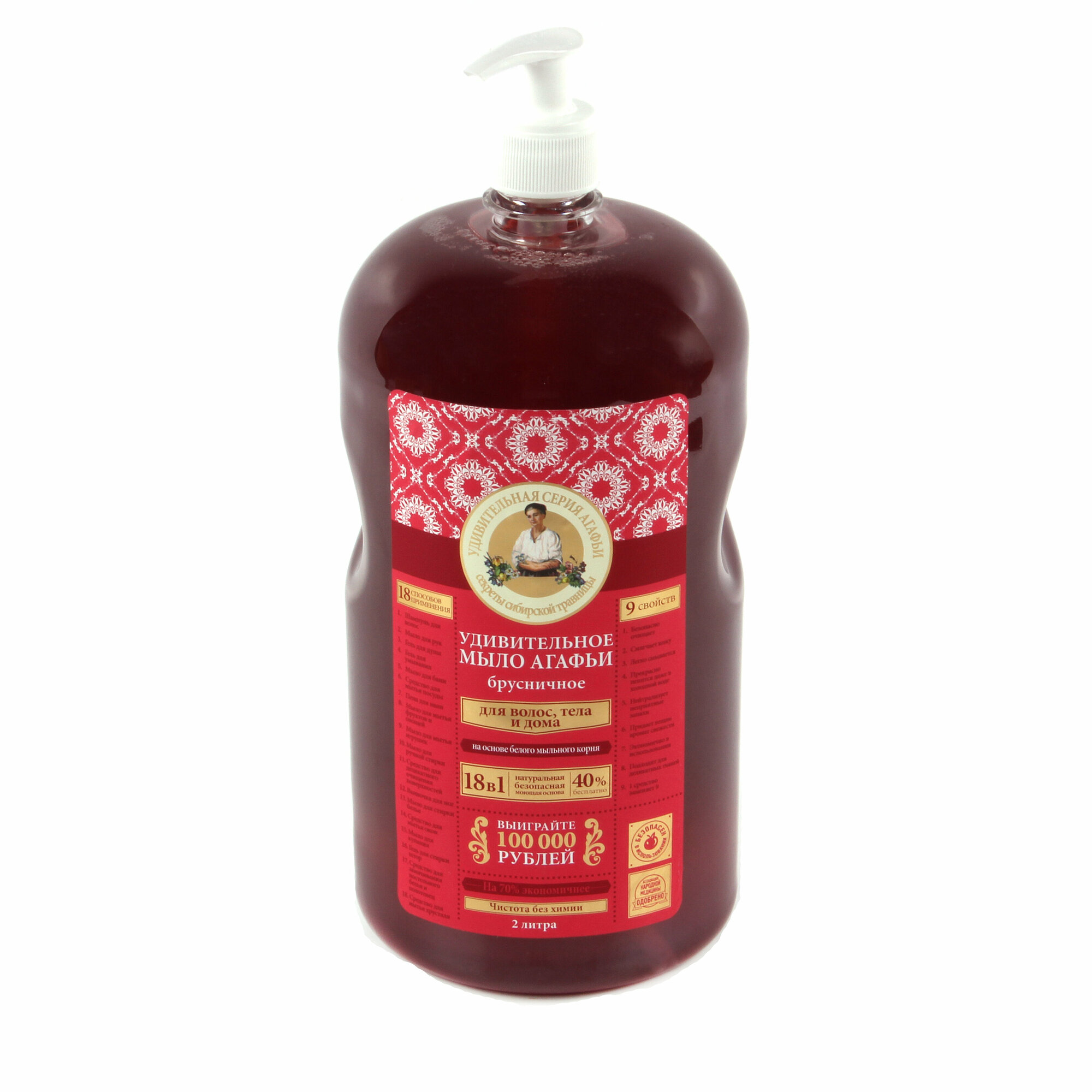 Жидкое мыло для дома 18 в 1 Рецепты бабушки Агафьи Удивительная серия "Брусничное" для мытья посуды, рук и тела 2000 мл