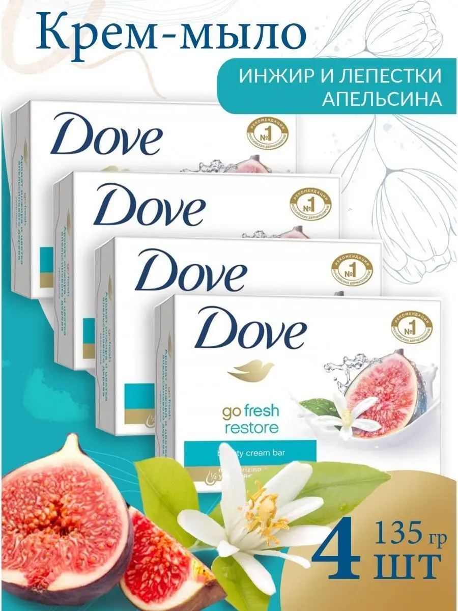 Купить Крем-мыло Dove Инжир и лепестки апельсина, 4 шт. по 135 г