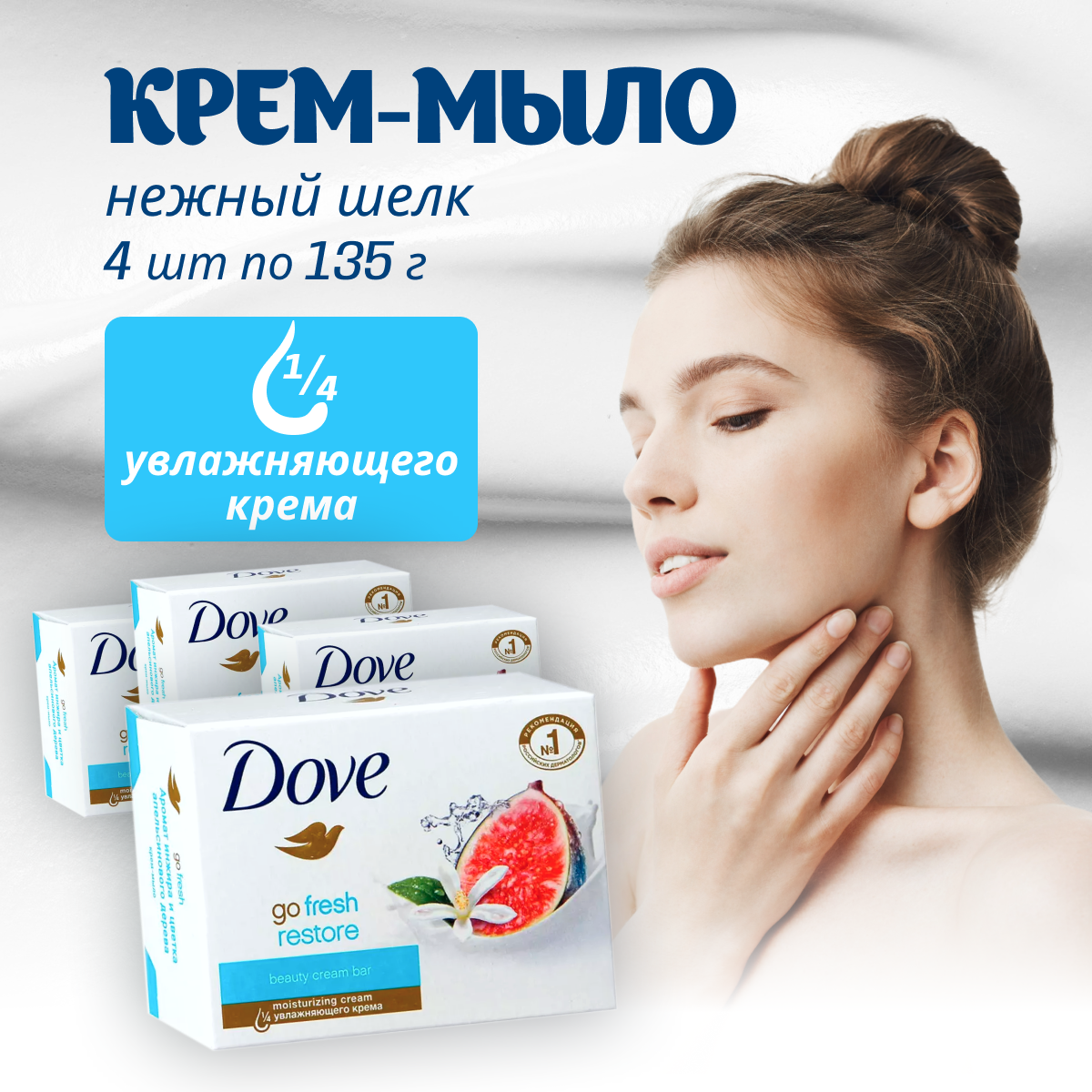 Ниже Вы можете прочитать отзывы на Крем-мыло Dove Инжир и лепестки апельсина, 4 шт. по 135 г, ознакомится с подробными характеристиками, посмотреть интересные обзоры и фотографии на Крем-мыло Dove Инжир и лепестки апельсина, 4 шт. по 135 г.