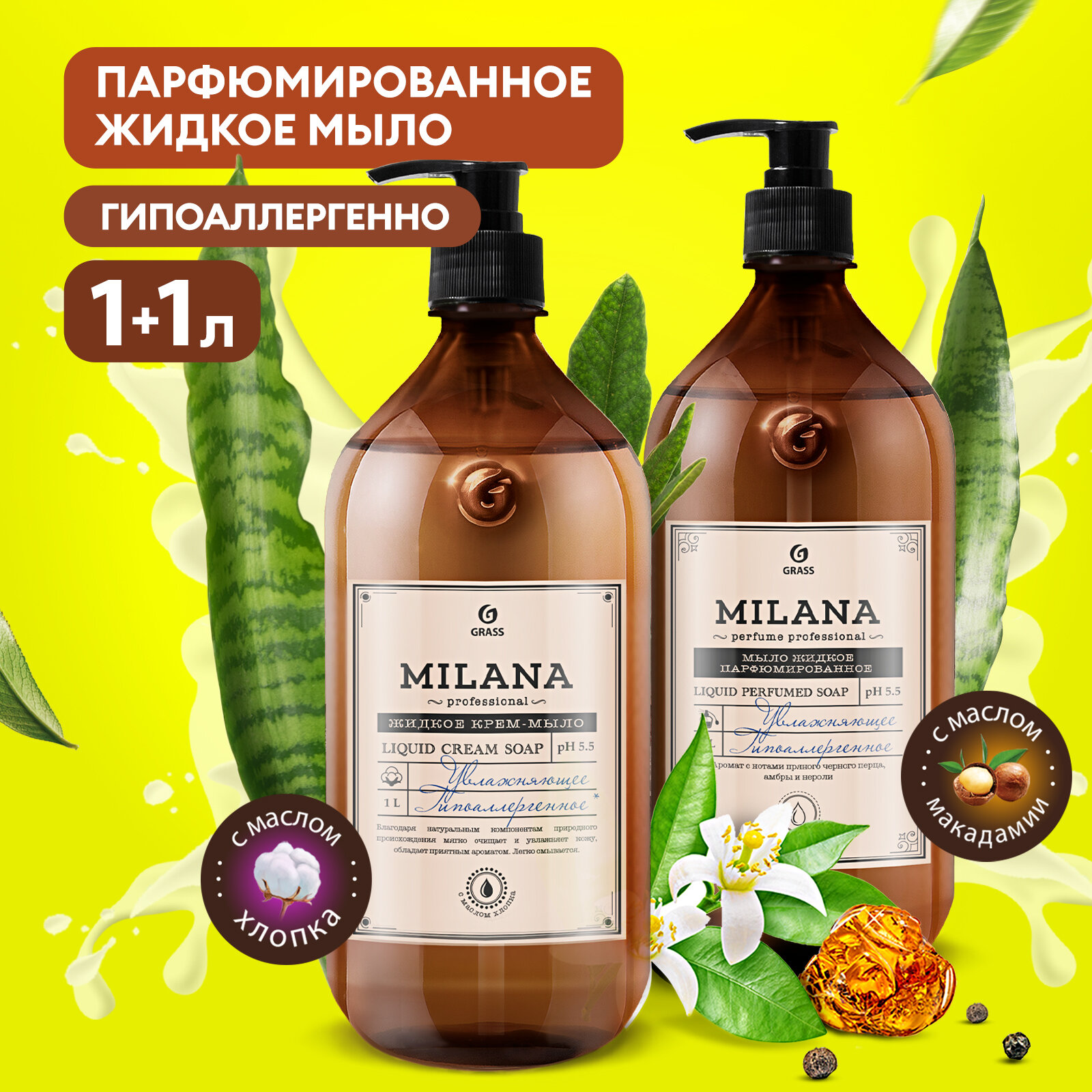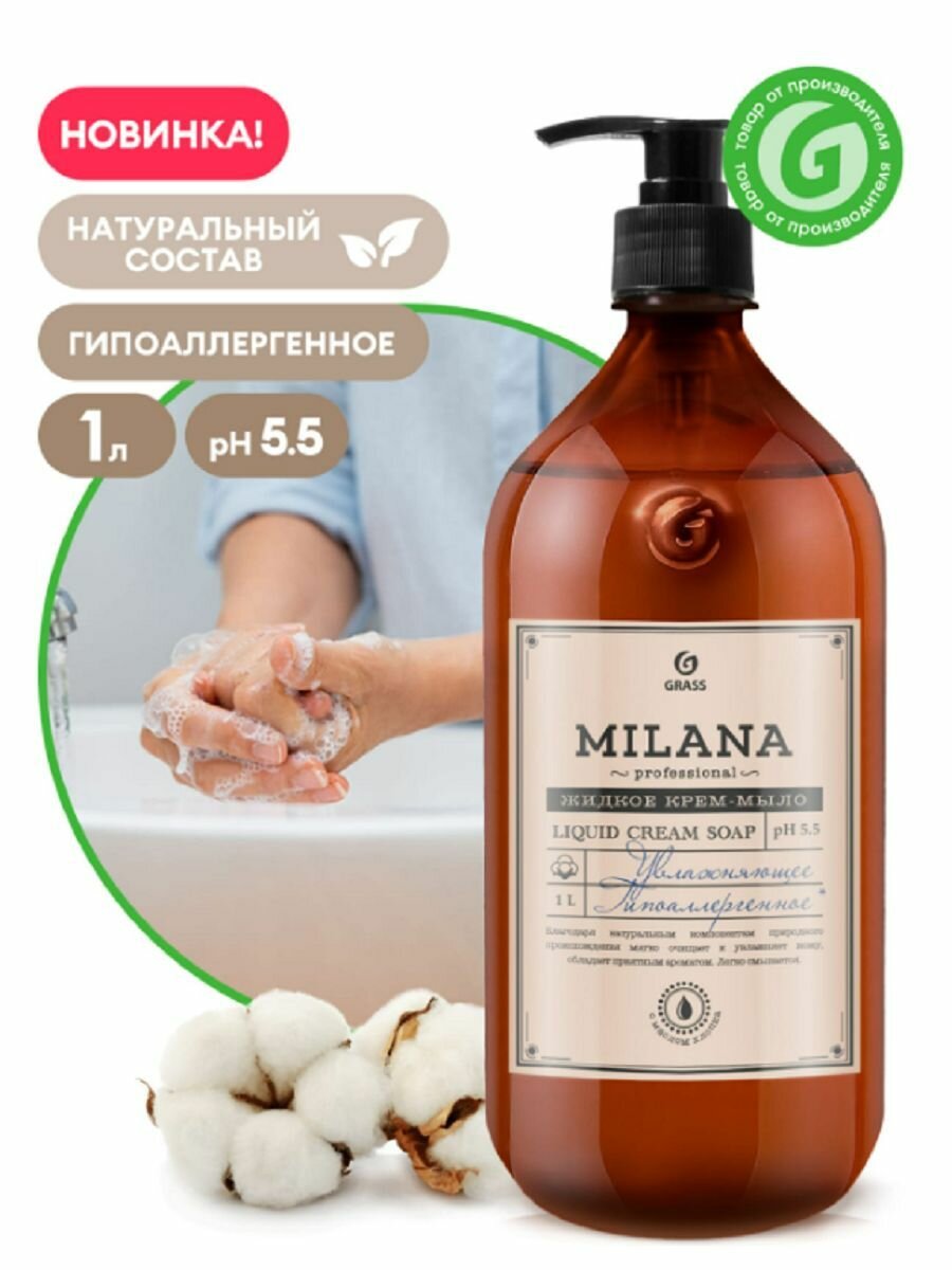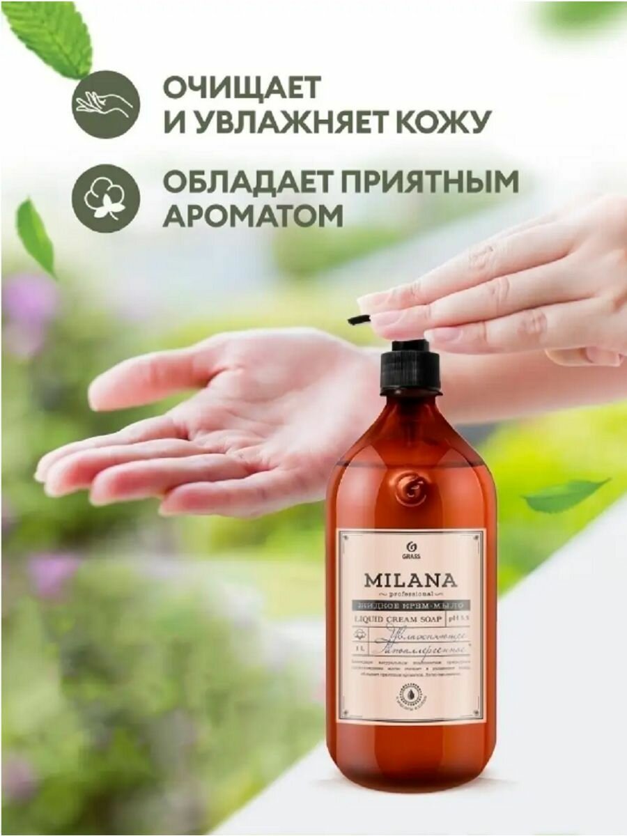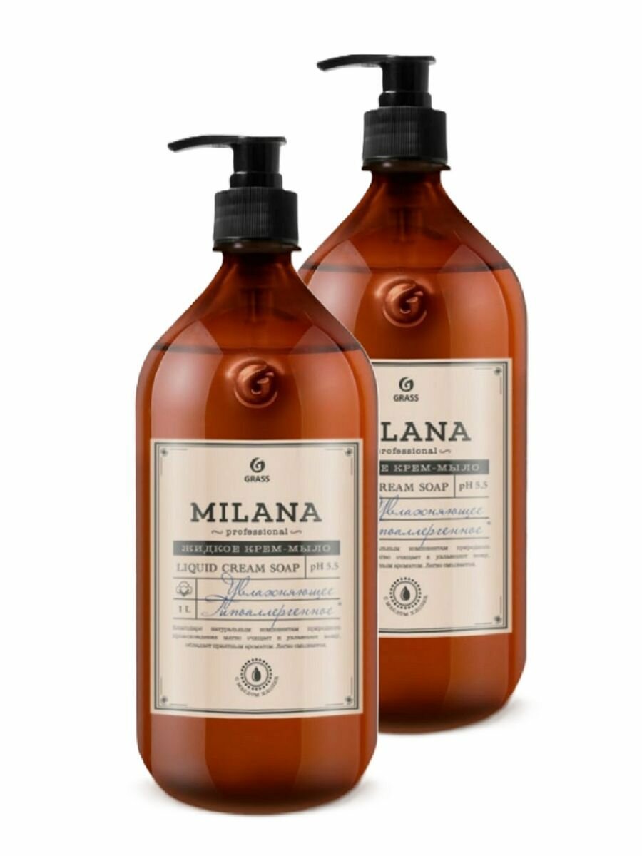 Жидкое крем-мыло Grass Milana Professional 1л+1л увлажняющее набор 2 шт. интересное: