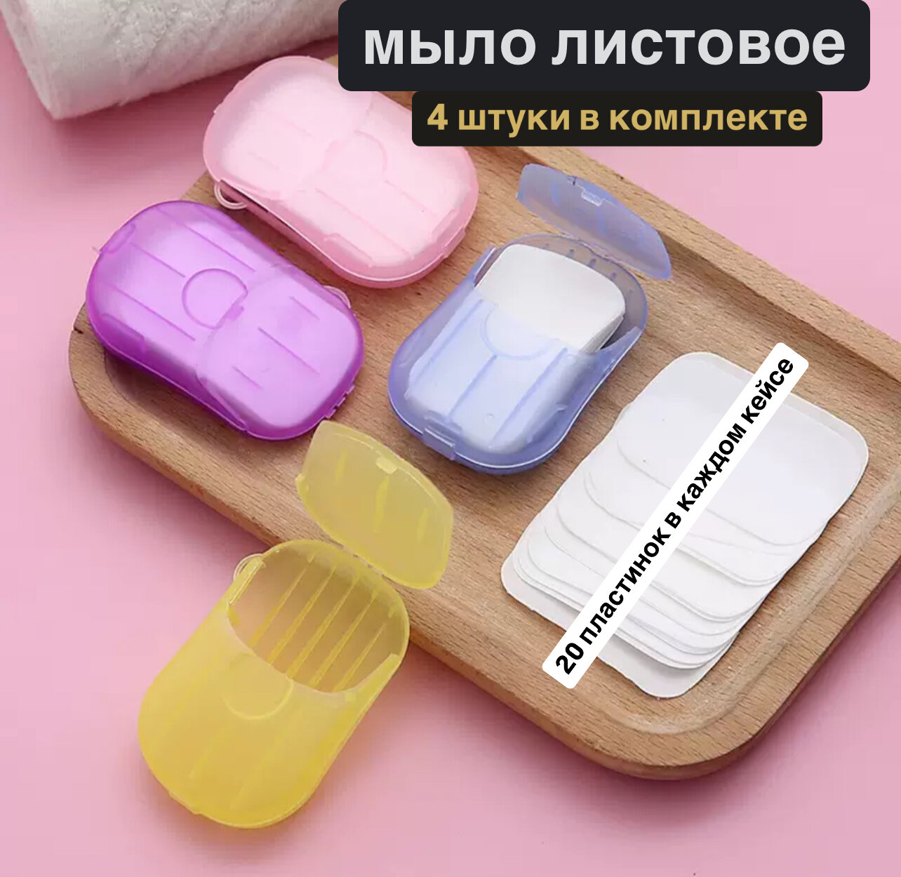 Мыло листовое в коробочке дорожное для путешествий (4 футляра в комплекте) интересное:
