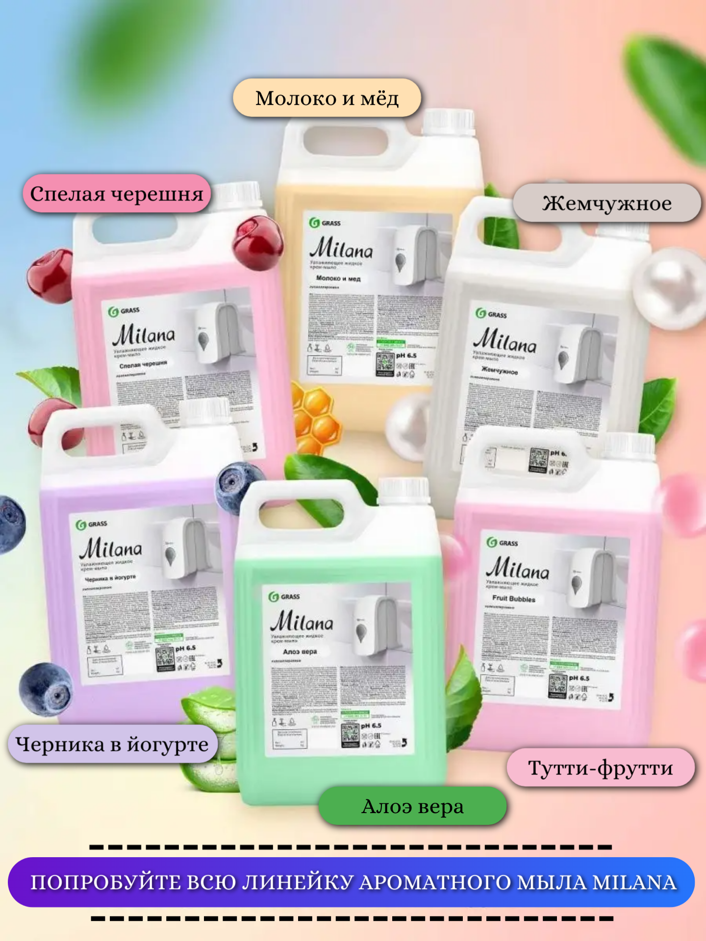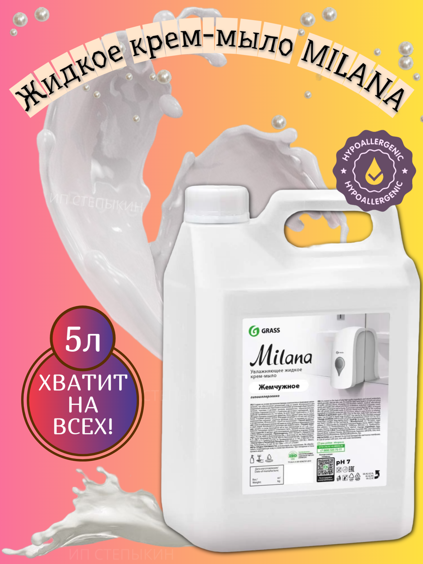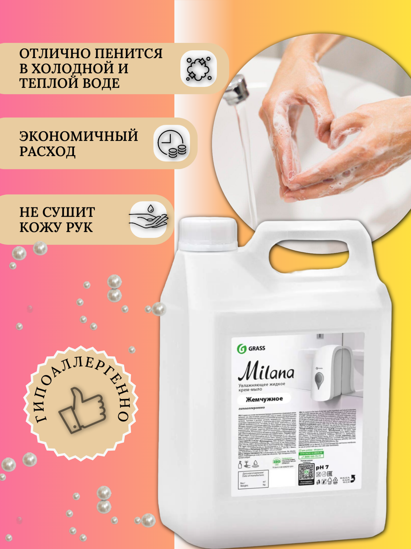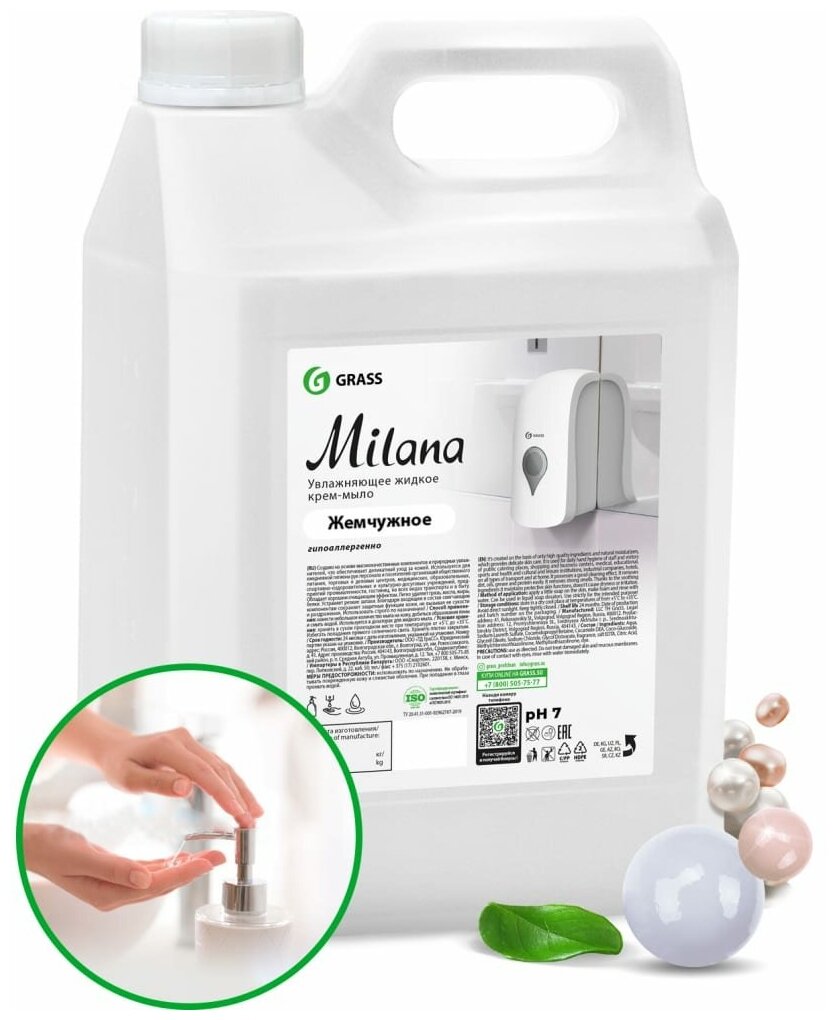 Grass Увлажняющее жидкое крем-мыло MILANA Жемчужное 5 кг Мыло для рук и тела интересное: