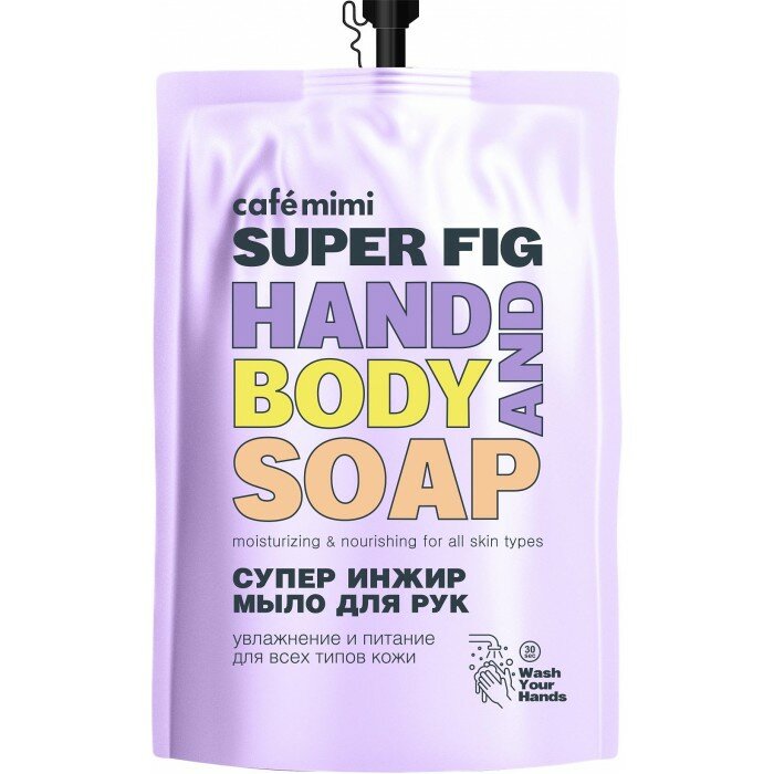 Cafe mimi Жидкое мыло для рук Супер Инжир (запаска), Cafe mimi 450 мл