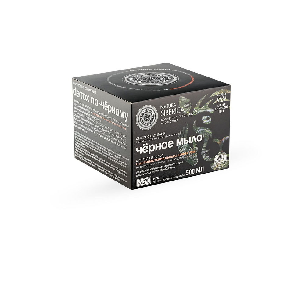 Natura Siberica MEN Черное сибирское мыло для бани мужское густое для волос и тела антибактериальное 500 мл