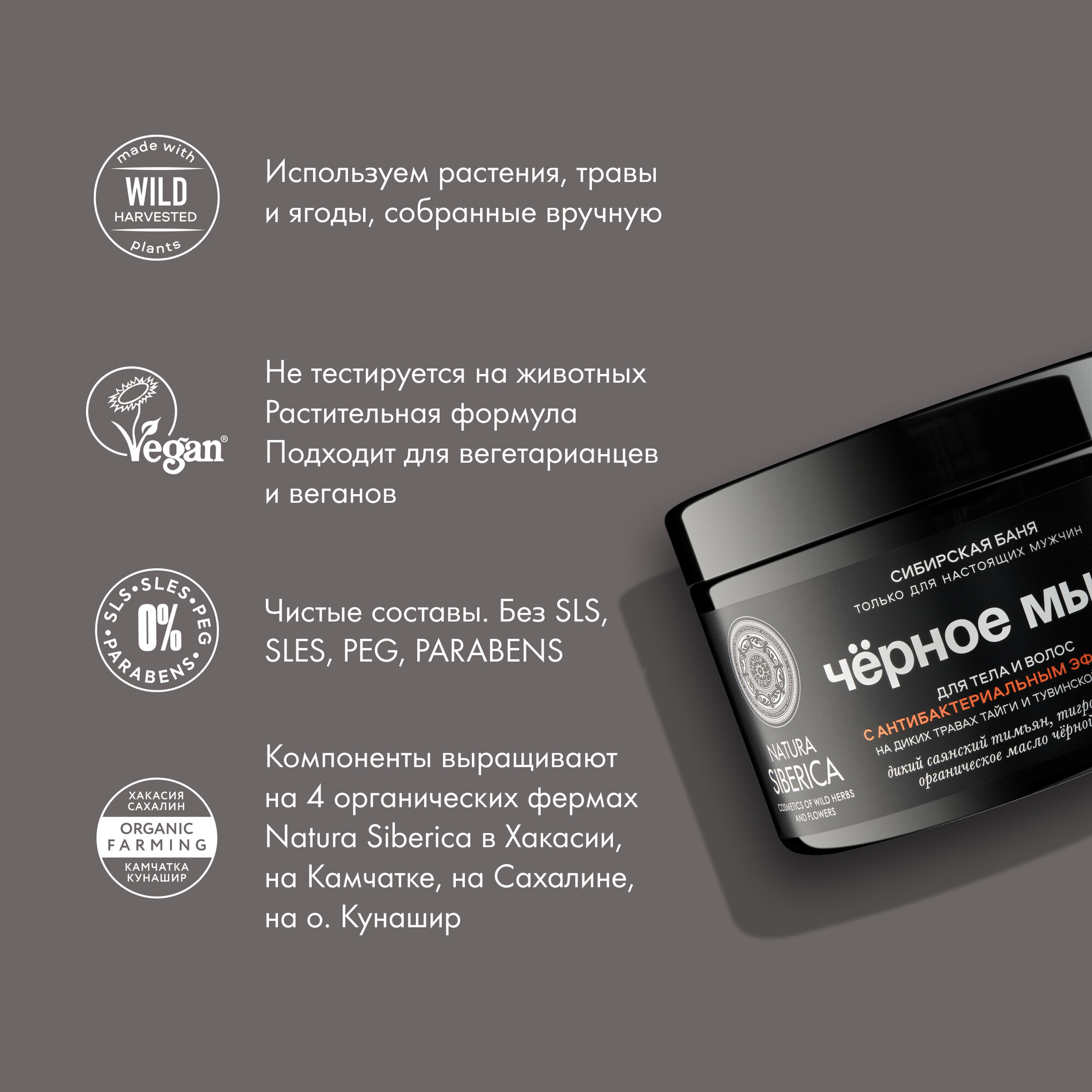 Черное мыло для тела и волос с антибактериальным эффектом «Сибирская баня» Natura Siberica, MEN, 500 мл интересное: