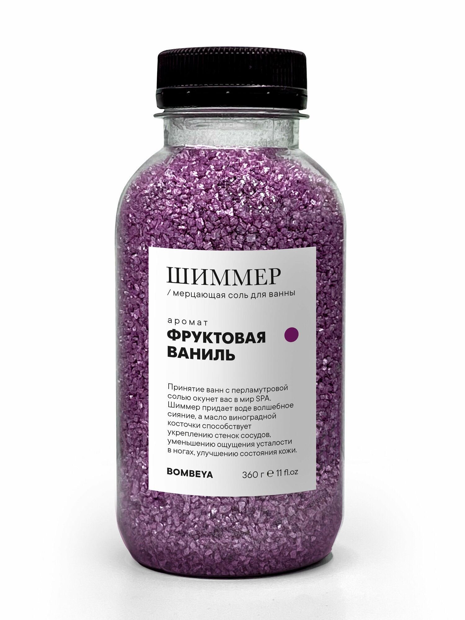 Мерцающая морская соль шиммер Bombeya для ванны с ароматом фруктовой ванили, 360 г. интересное: