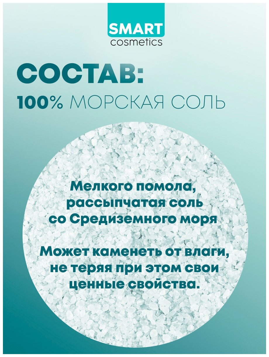 Морская соль для ванн, 1 кг/Smart Cosmetics/Морская натуральная соль/Соль для ванны/Очищение и регенерация кожи/Выведение токсинов