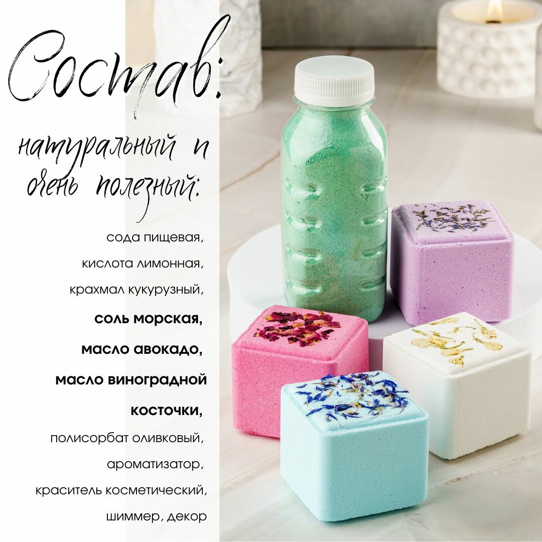 Бомбочки для ванны бурлящие натуральные кубы. Подарочный набор большой 12 штук.