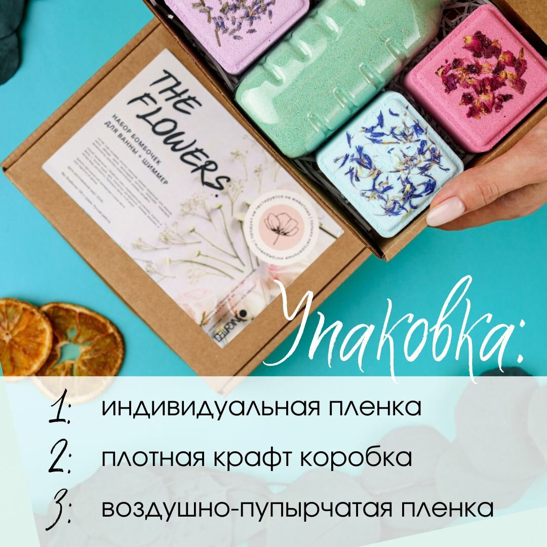 СохранитьСПА набор: перламутровый шиммер и 4 бомбочки для ванны с цветами - роза, лаванда, василек, жасмин. интересное: