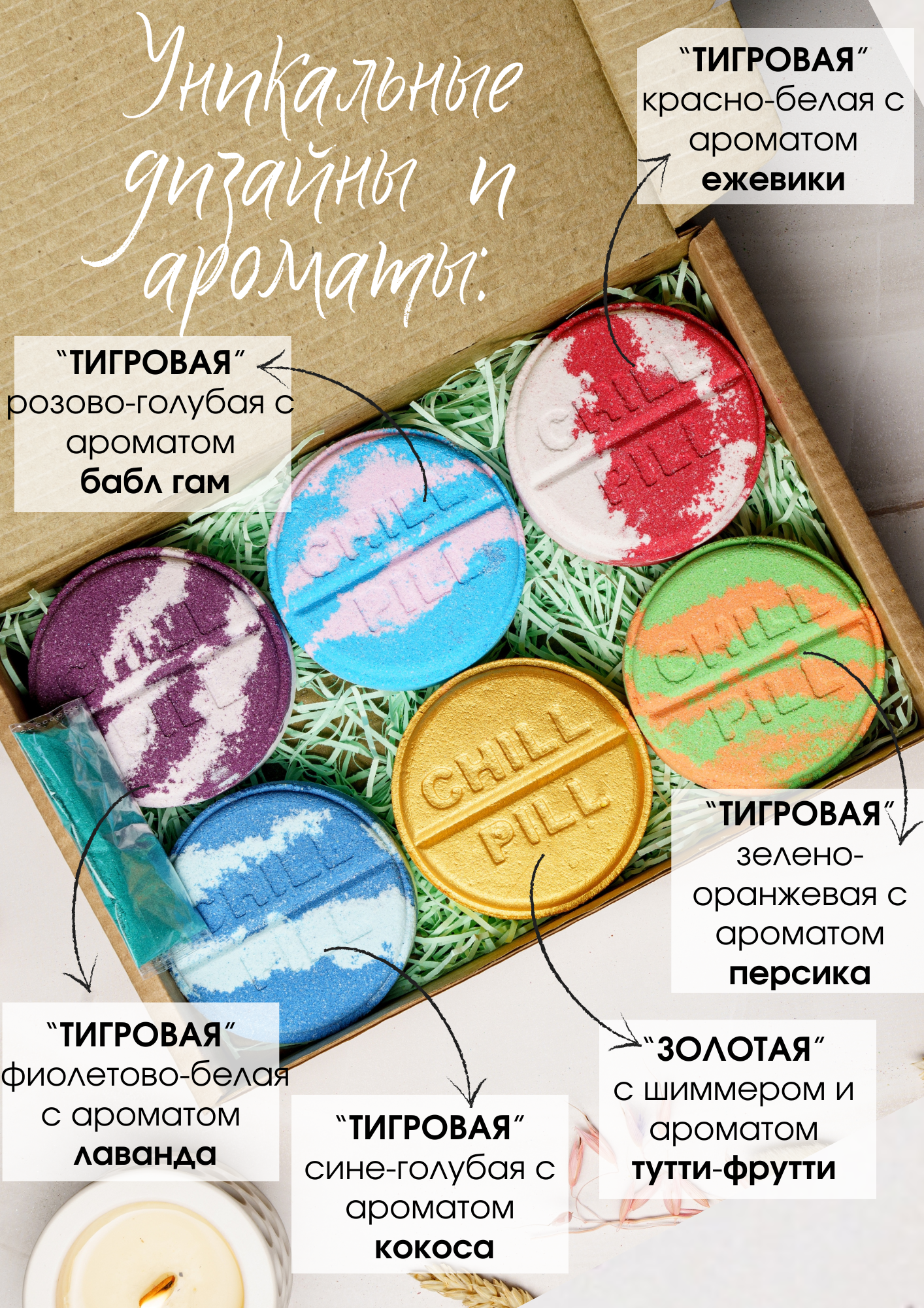Купить Бомбочки для ванны двухцветные Таблетки Набор 6 штук