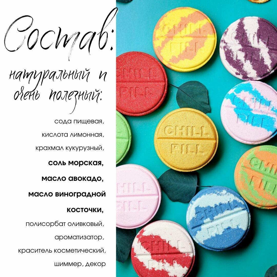 | Способ применения | снять индивидуальную упаковку, опустить в ванну с теплой водой, дать полностью раствориться. |