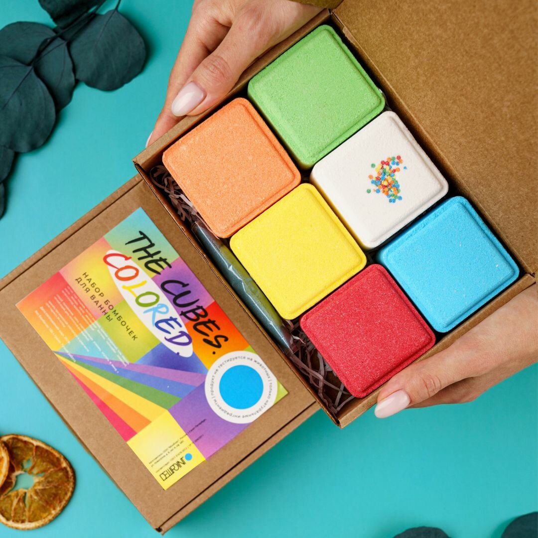 Бомбочки для ванны кубы 6 штук Набор подарочный унисекс для мужчин и женщин