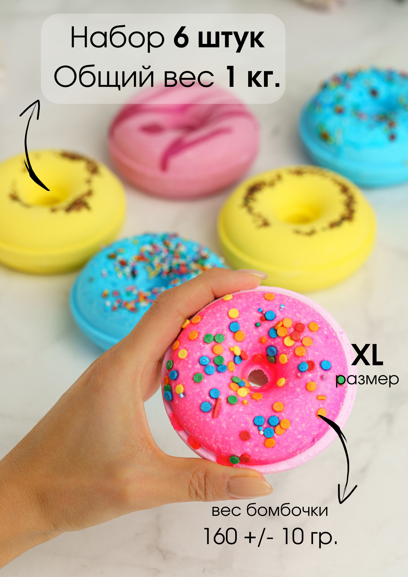 Купить Premium SPA набор. Большая бомбочка для ванны пончик. Бьюти бокс, Подарочный набор "Пончики микс" из 6 штук. Вес 840 грамм. Готовый подарок.