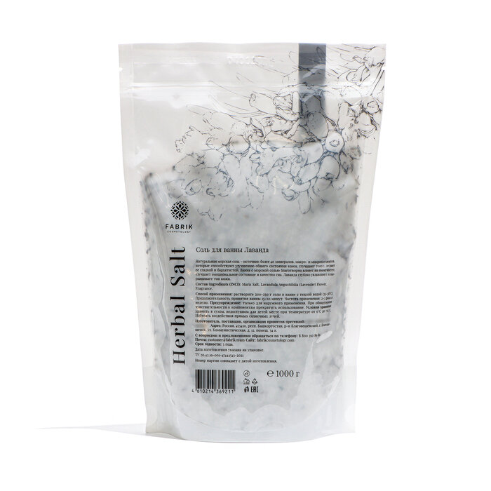Соль для ванн в пакете Fabrik Cosmetology лаванда, 1000 г 10331248 интересное: