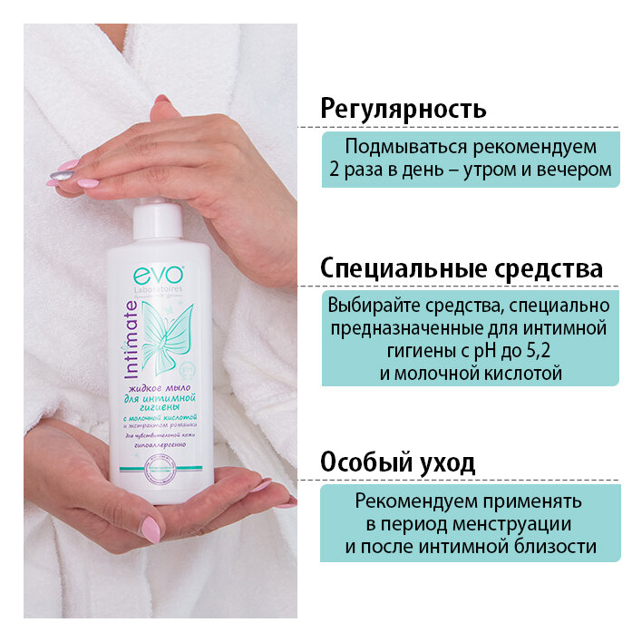 EVO Intimate Жидкое мыло для интимной гигиены для чувствительной кожи с молочной кислотой, рН 5,2, 200 мл х 3 штуки интересное: