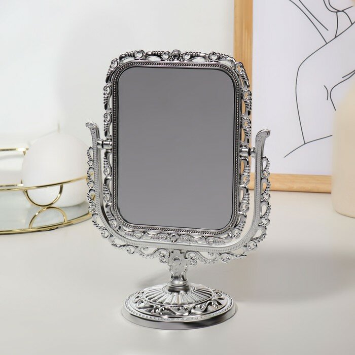 Зеркало настольное, двустороннее, с увеличением, зеркальная поверхность 10,5 × 14,5 см, цвет серебристый