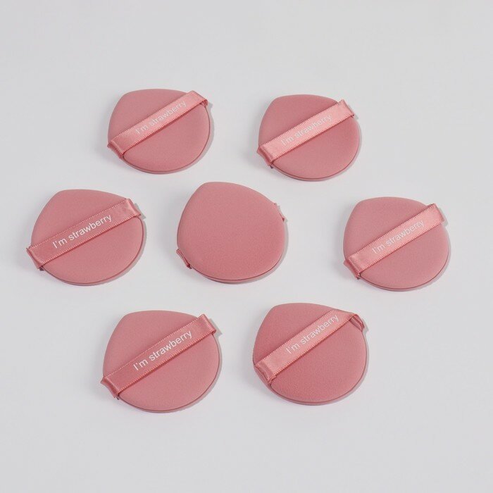 Спонжи для макияжа «STRAWBERRY», набор - 7 шт, d = 5,5 см, с держателем, в футляре, цвет розовый интересное: