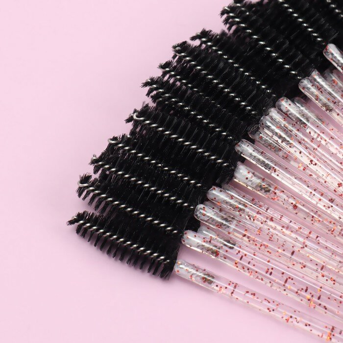 Купить Набор щёточек для бровей и ресниц, 9,5 см, 50 шт, цвет чёрный/красный/прозрачный