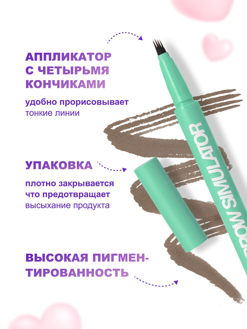 Лайнер для бровей Love Generation Brow Simulator стойкая текстура, натуральная прорисовка волосков, тон 03, холодный коричневый, 0,5 мл