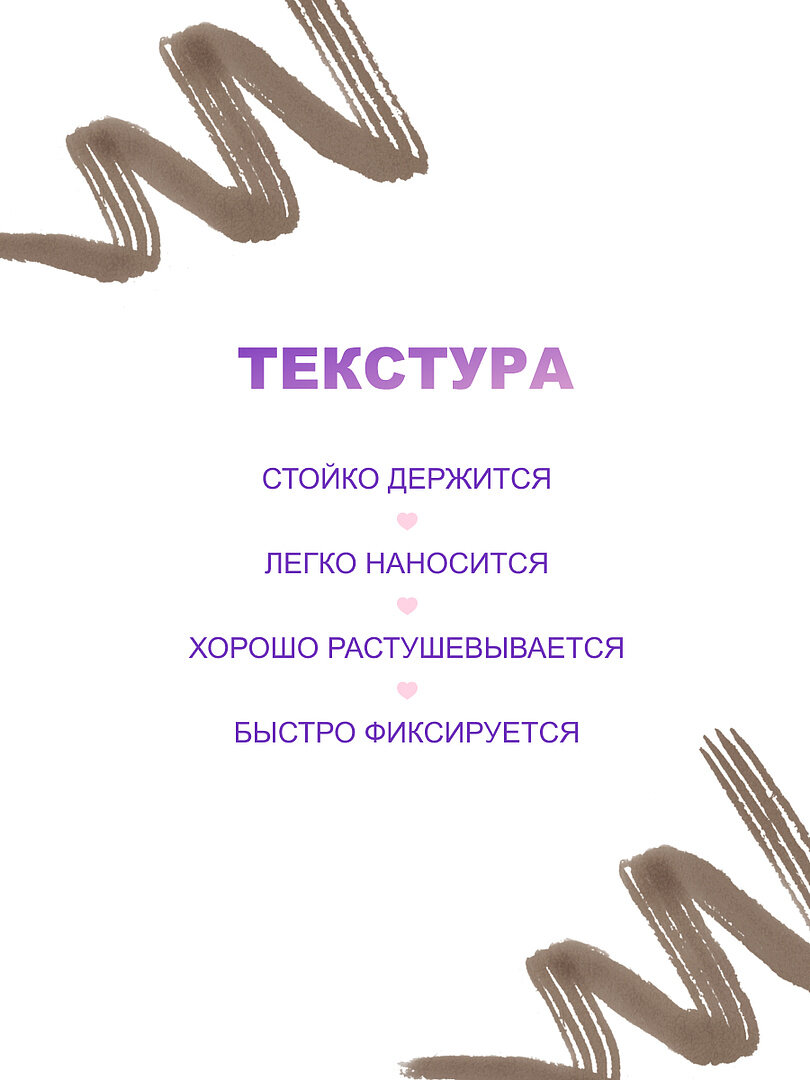 | Способ применения | Прорисовывай волоски тонкими линиями, чтобы заполнить пустоты. Двигайся в направлении от переносицы к виску. |