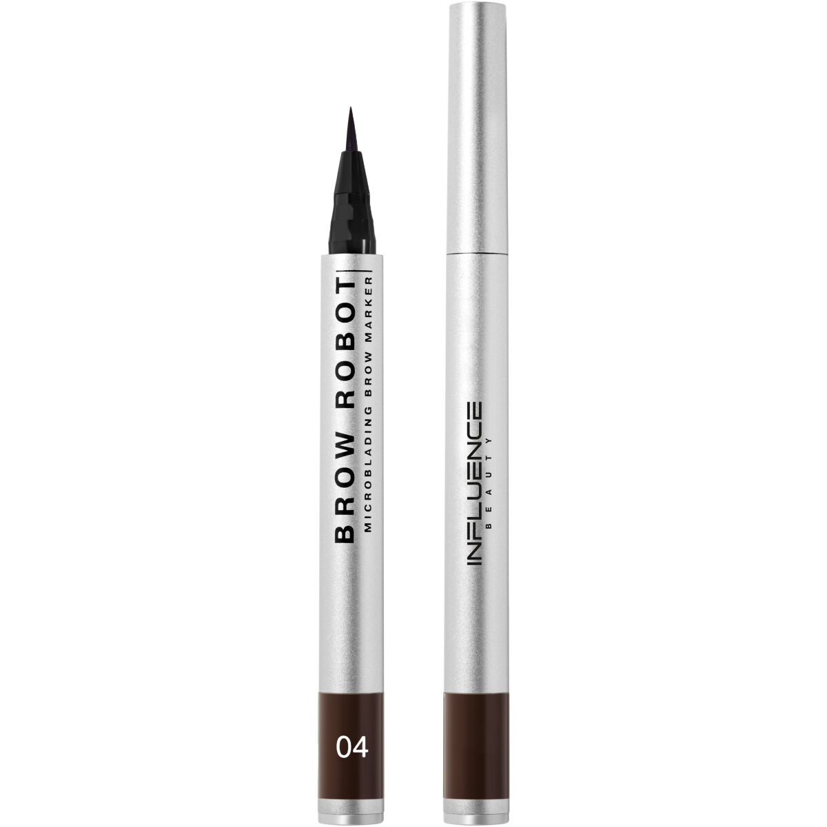 Маркер для бровей INFLUENCE BEAUTY BROW ROBOT с тонкой кистью, эффект микроблейдинга, тон 04: темно-коричневый, 0,7мл