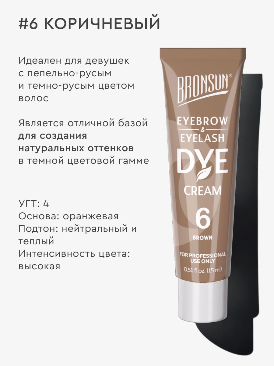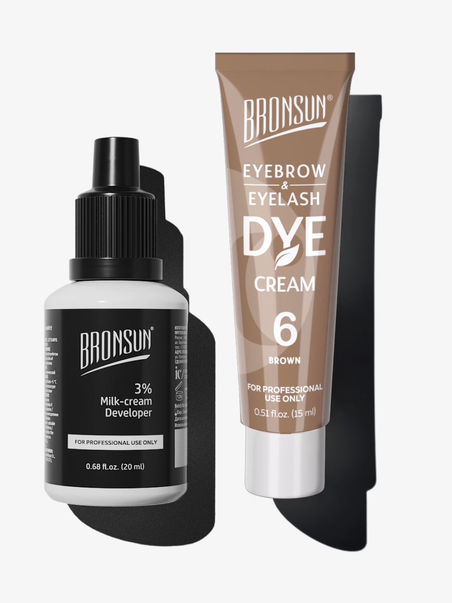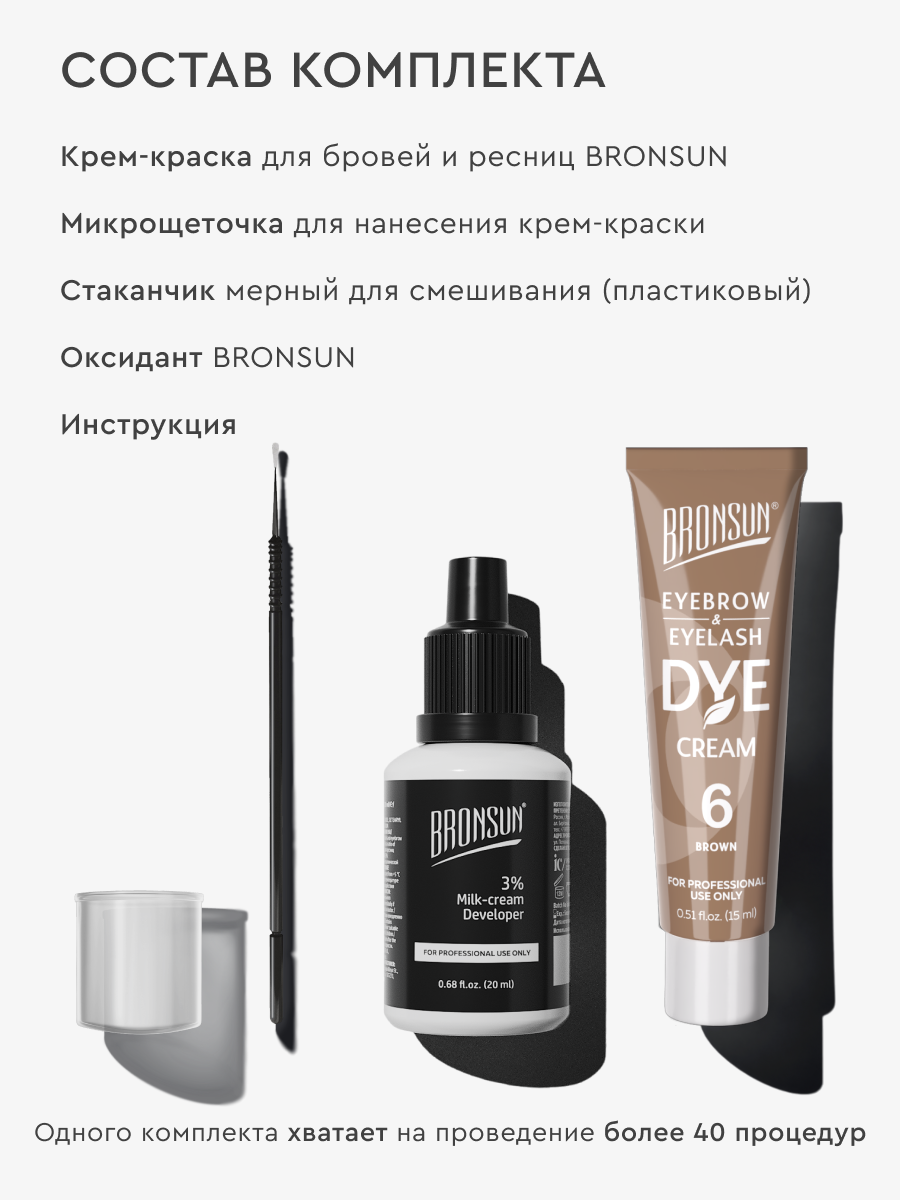Комплект BRONSUN #6, краска для ресниц и бровей, цвет коричневый, 15 мл + оксидант-молочко, 20 мл