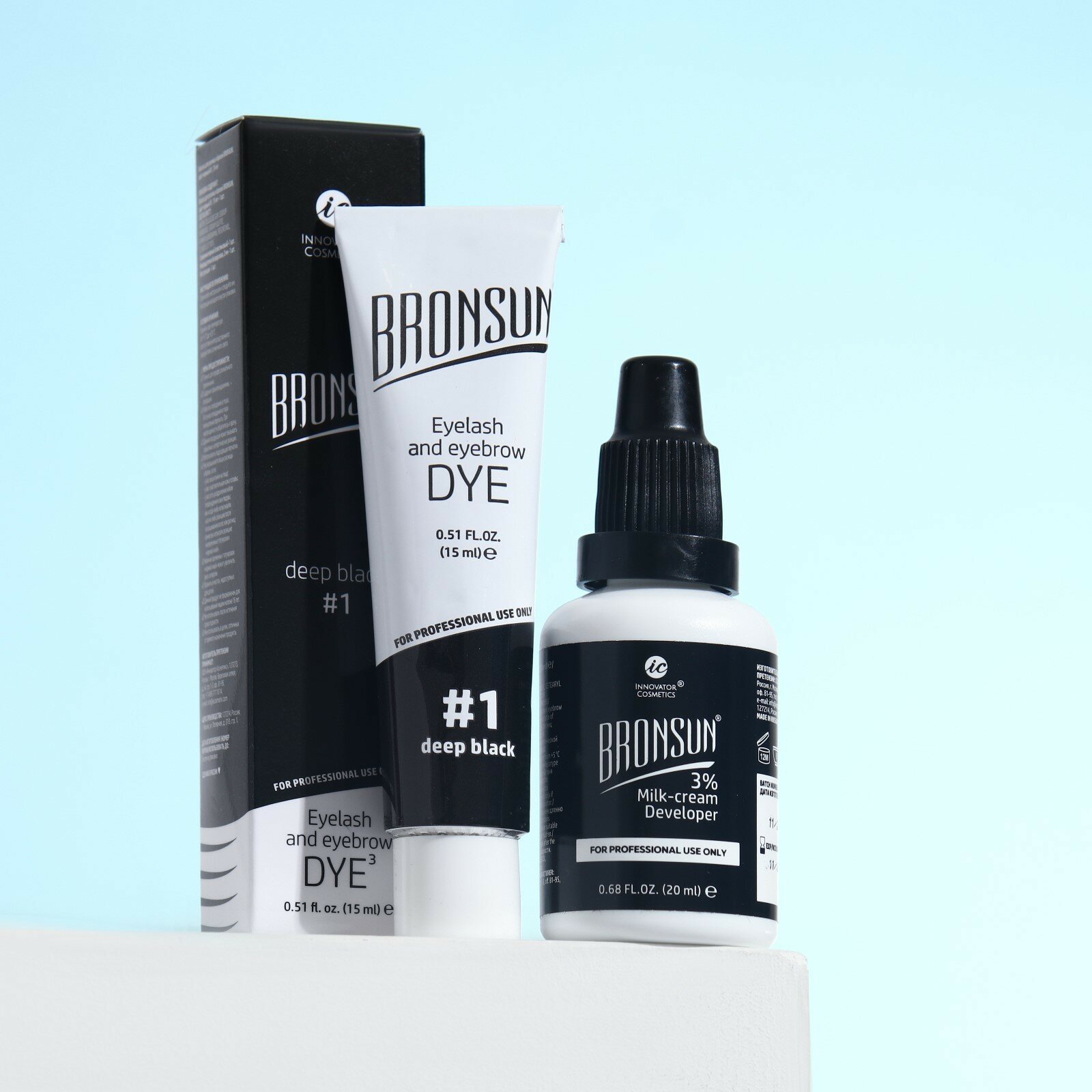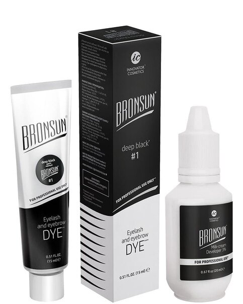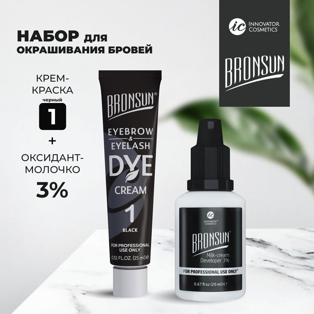 Купить Комплект BRONSUN #1, краска для ресниц и бровей, цвет черный, 15 мл + оксидант-молочко, 20 мл