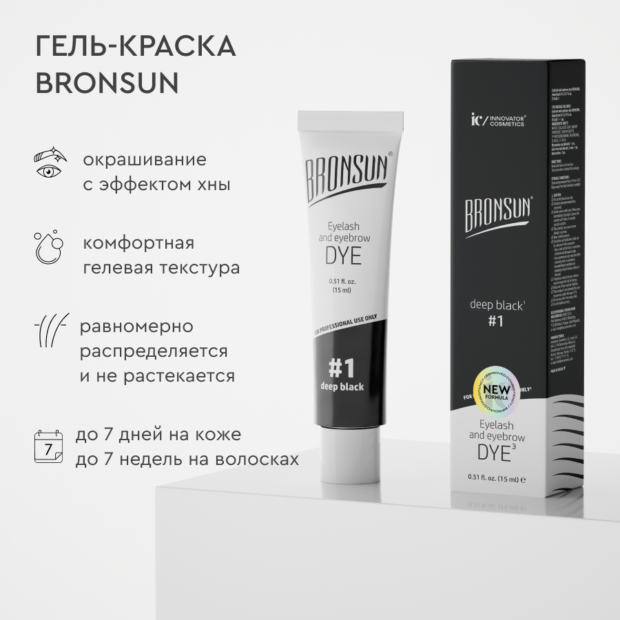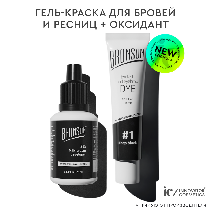 СохранитьКомплект BRONSUN #1, краска для ресниц и бровей, цвет черный, 15 мл + оксидант-молочко, 20 мл интересное: