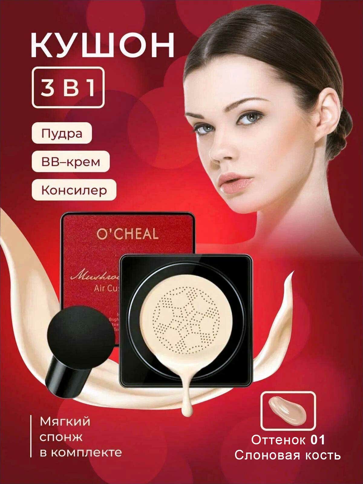 Тональный крем кушон O'CHEAL Mushroon Spring Air Cushion Frost, тон 01 слоновая кость интересное: